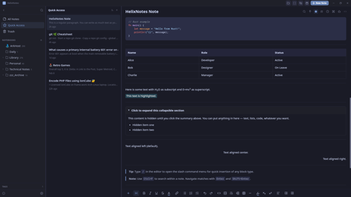 The name comes from the double helix. Structured but flexible, like how notes should be. Trilium is a solid project, but it stores notes in an SQLite database and runs on Electron. HelixNotes keeps everything as plain .md files and uses Tauri, so much lighter on resources.