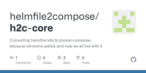 Pokexpert30 🌓@jlai.lu to Selfhosted@lemmy.worldEnglish · 6 days agoI have made a Kubernetes to Docker-compose converter/devolver. It's horrible. It's glorious.plus-squaregithub.comexternal-linkmessage-square0fedilinkarrow-up11arrow-down10